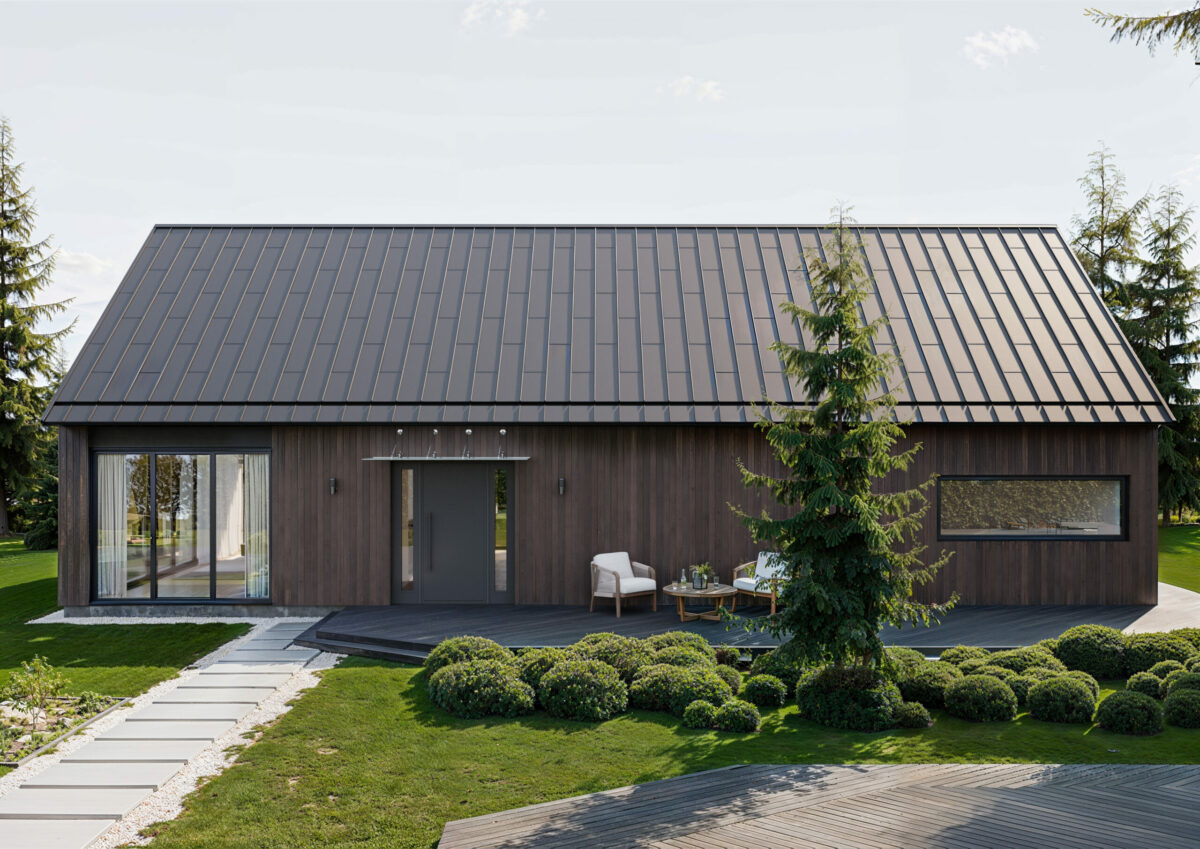 A GRIN MOD tetőfedő megoldás a modern építőipar növekvő igényeinek felel meg. Egyesíti a hagyományos állókorc eleganciáját a moduláris telepítés egyszerűségével és gyorsaságával. A panelek váltakozó mintázatban kerülnek beépítésre, ami a kézzel készített állókorcokra emlékeztető sakktábla-hatást eredményez. A speciálisan kialakított kivágások a panel alján és az átfedő rendszer biztosítja a teljes tetőszigetelést.