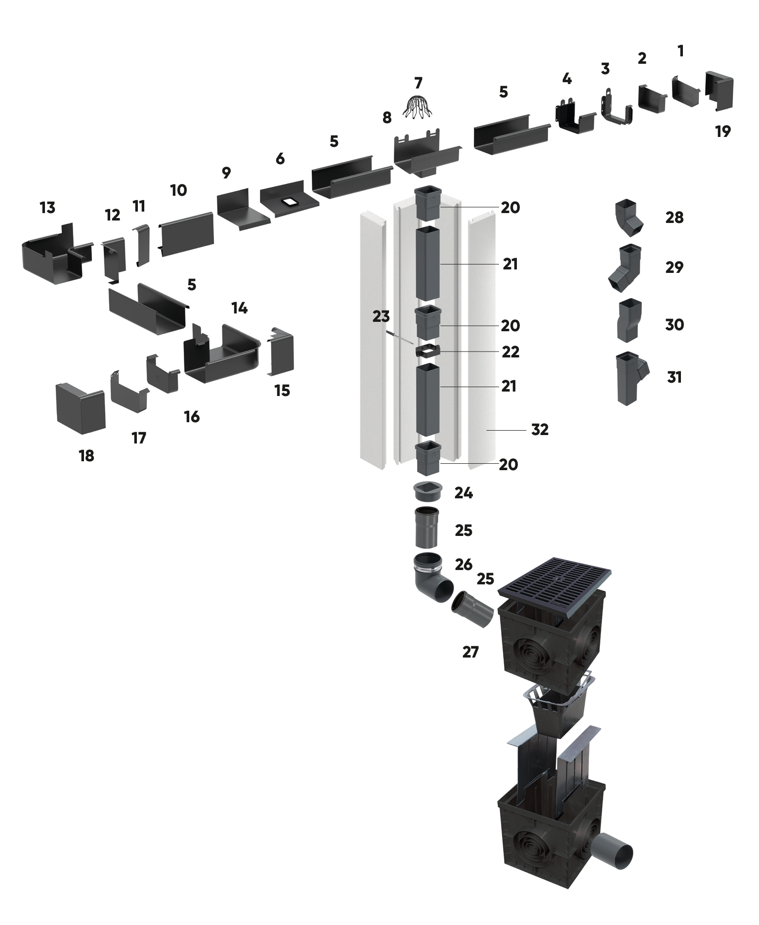 Az ereszcsatornát és a lefolyót a homlokzati szigetelésében el lehet rejteni, ezáltal a leginnovatívabb építészeti tervek is megvalósíthatók anélkül, hogy a csöveket a homlokzaton kívül kellene hagyományos módon felszerelni.